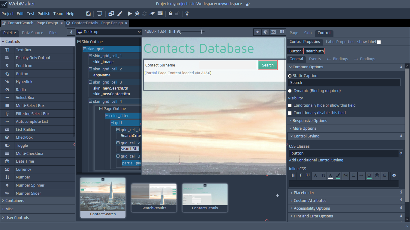 WebMaker controls are data bound by default and you have the option to enter a static value or dynamically bind to server data (Server Controllers are required for data submission). If the dynamic option is selected, you will have to review or enter binding XPaths on the Bindings tab. This same approach is used to control many dynamic aspects for controls, including conditional visibility, event handling, etc.