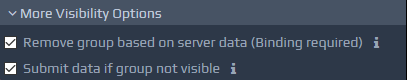 There may be situations when you need to hide, show or disable certain parts of pages based on the value of other fields. You can build rules, based on data, to make the decisions. You have a range of options under the Visibility Details section. You can setup dynamic visibility rules that control the visibility of your controls, based on your data. This requires XPaths against the relevant fields or groups on the Bindings page (discussed later), the outcome of which will determine whether to hide or show the relevant fields or groups.Group Visibility contains additional options, including show/hide based on changes in field values. For example, checkbox for alternative delivery address, can be setup to show an additional address.The visibility option that will most commonly be used is the Conditionally hide or show this field. This provides processing to display fields based on the values of one or more fields dynamically as they change. This makes it easy to control visibility for fields and groups of fields.